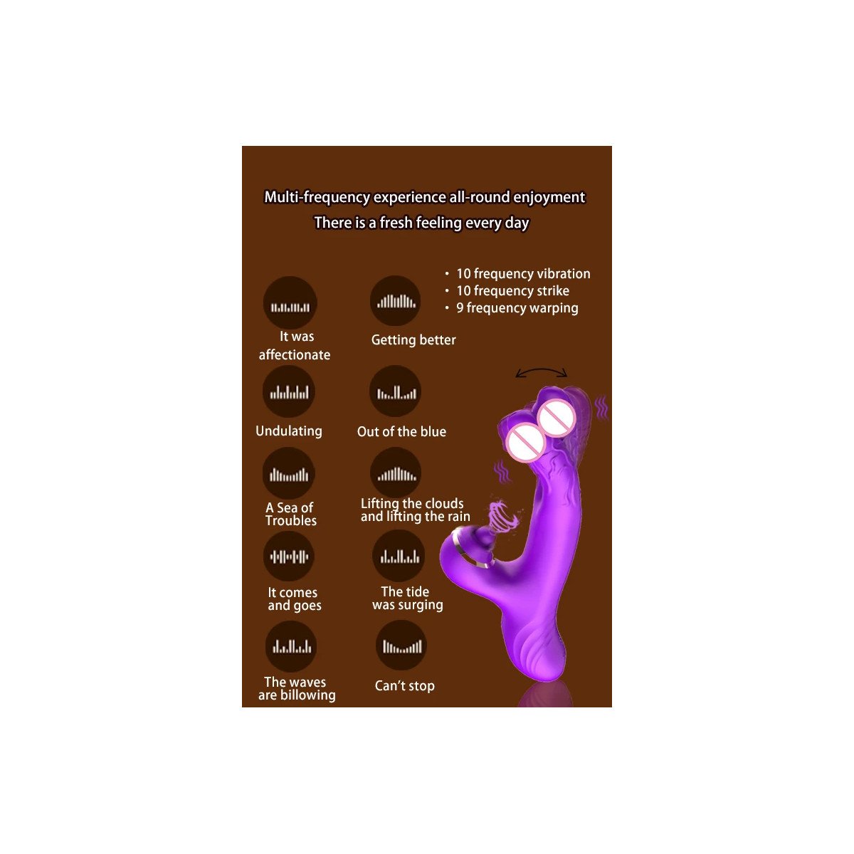 Wir präsentieren den Flapping Dildo Vibrator von Aiersha, das ultimative Lustgerät für Frauen, die intensive Empfindungen und unvergessliche Orgasmen suchen. Dieser innovative Dual-Dildo-Vibrator ist darauf ausgelegt, sowohl den G-Punkt als auch die Klitoris gleichzeitig zu stimulieren und sorgt so jedes Mal für ein überwältigendes Erlebnis. Mit seinen anpassbaren Funktionen können Sie Ihr Vergnügen mit 10 Frequenzvibrationen, 10 Frequenzschlägen und 9 Frequenzverzerrungsoptionen individuell gestalten und Ihre Wünsche wie nie zuvor erkunden.