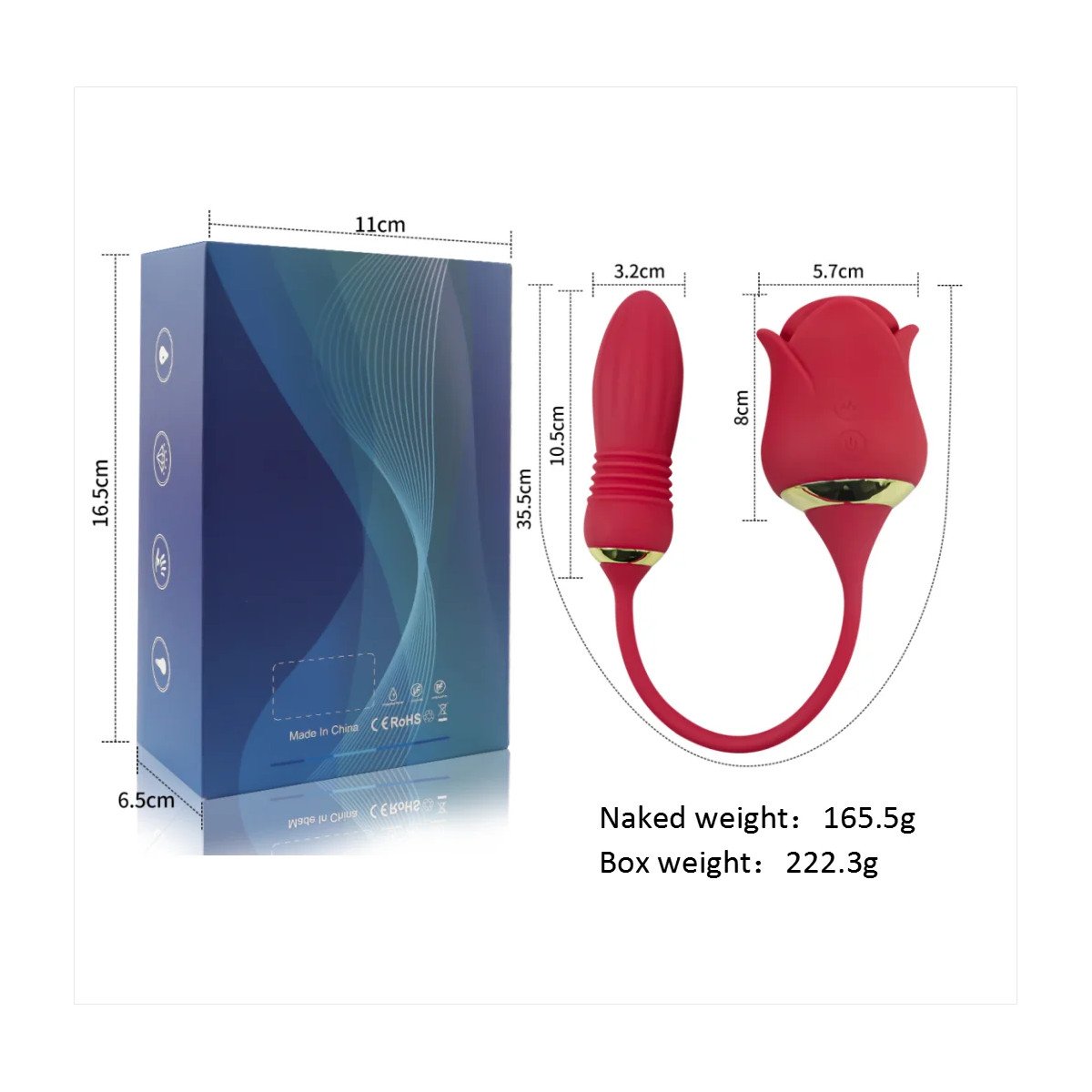 Die innovative Saugfunktion ahmt die Empfindungen oraler Freude nach und bietet intensive Stimulation, die Ihre empfindlichsten Bereiche anspricht. Mit seinem G-Punkt-Design verbessert dieser Vibrator nicht nur das klitorale Vergnügen, sondern stimuliert auch tiefere Empfindungen, was ihn zu einer vielseitigen Ergänzung Ihrer Sammlung macht. Der Rose Toy ist CE-zertifiziert und erfüllt hohe Sicherheits- und Qualitätsstandards, sodass Sie mit Vertrauen genießen können.