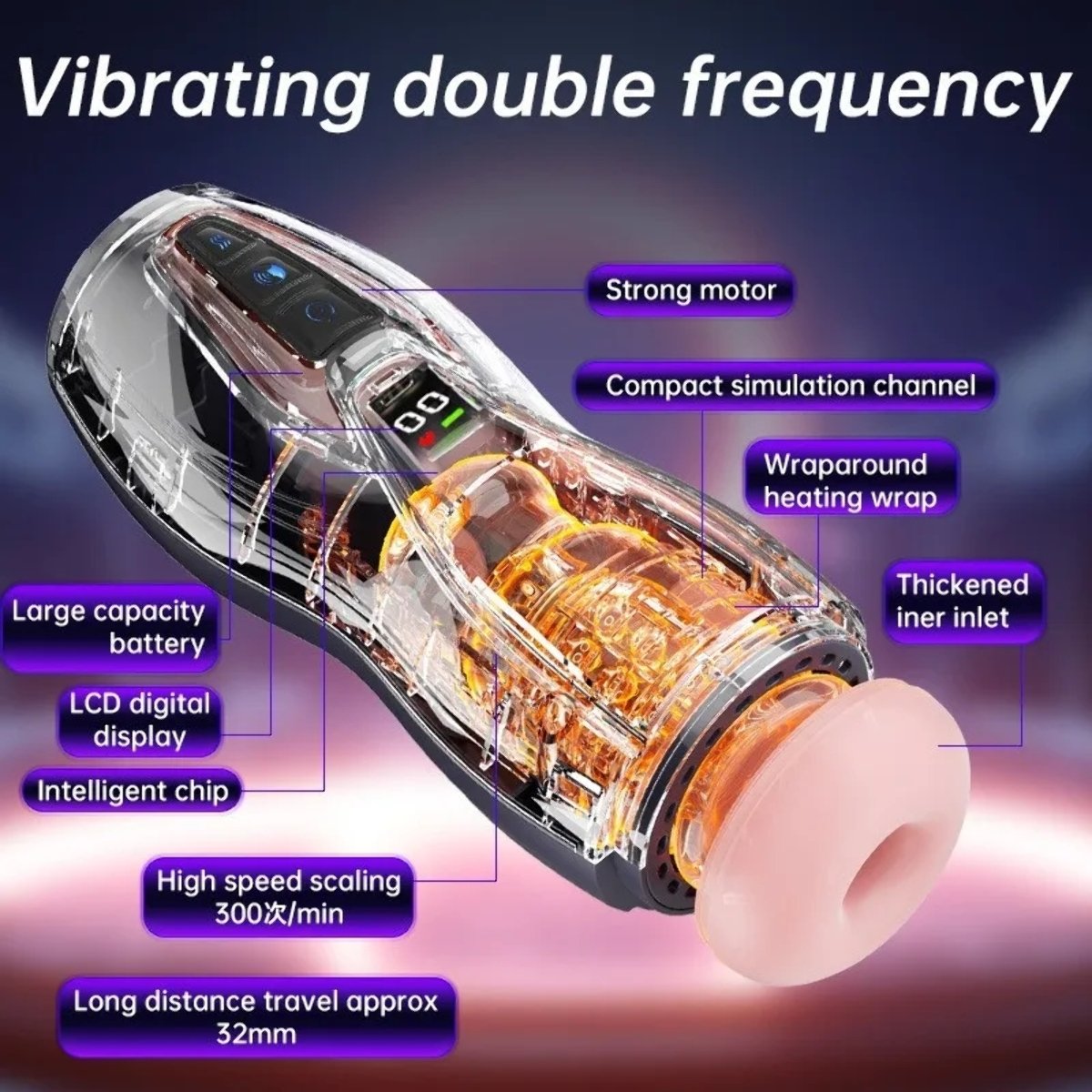 Ausgestattet mit fortschrittlichen Heiz- und Vibrationsfunktionen bietet dieser Masturbator individuell anpassbares Vergnügen, das auf Ihre Wünsche abgestimmt ist. Der elektrische Betrieb ermöglicht eine mühelose Anwendung, wodurch er sowohl für Solo-Sessions als auch zur Bereicherung des Paare-Spiels perfekt geeignet ist. Mit seinem diskreten Design können Sie Ihre persönliche Zeit unbesorgt genießen.