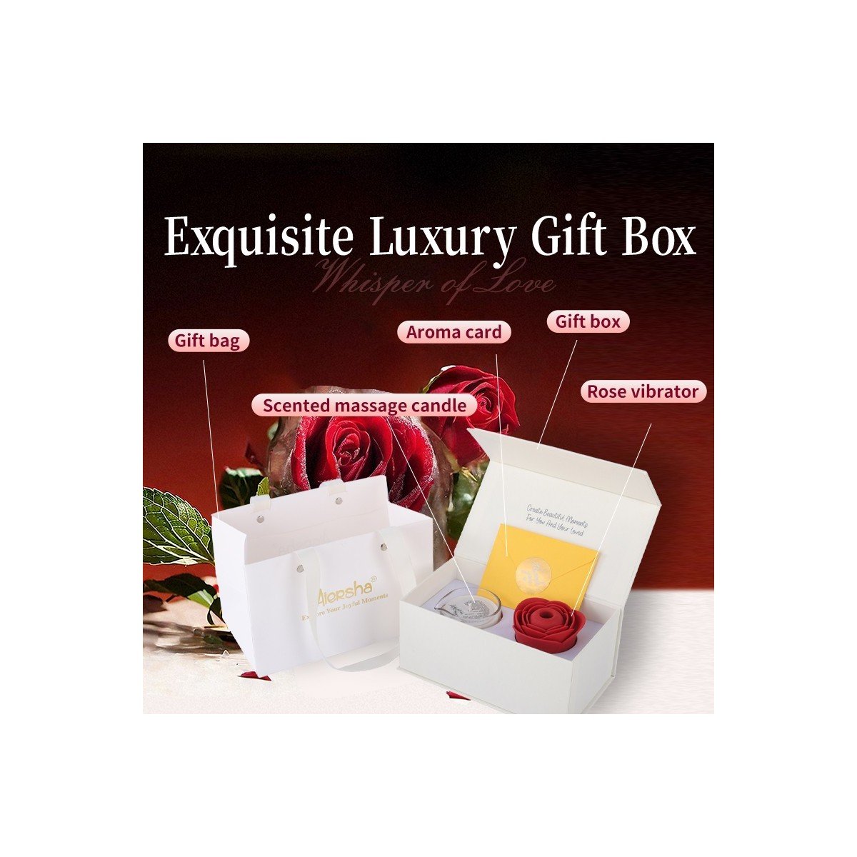 Despierta una multitud de sensaciones tiernas con el Set de Aromaterapia Aiersha Rose, una combinación refinada diseñada para ocasiones románticas y sensuales. Esta colección trasciende un simple regalo; es una invitación personal a disfrutar del placer sensorial. Presentado en una elegante caja de regalo con una bolsa a juego, es el presente ideal para celebrar cualquier hito especial. Fusiona sin esfuerzo la influencia calmante de la aromaterapia con la intensa gratificación de un dispositivo íntimo.