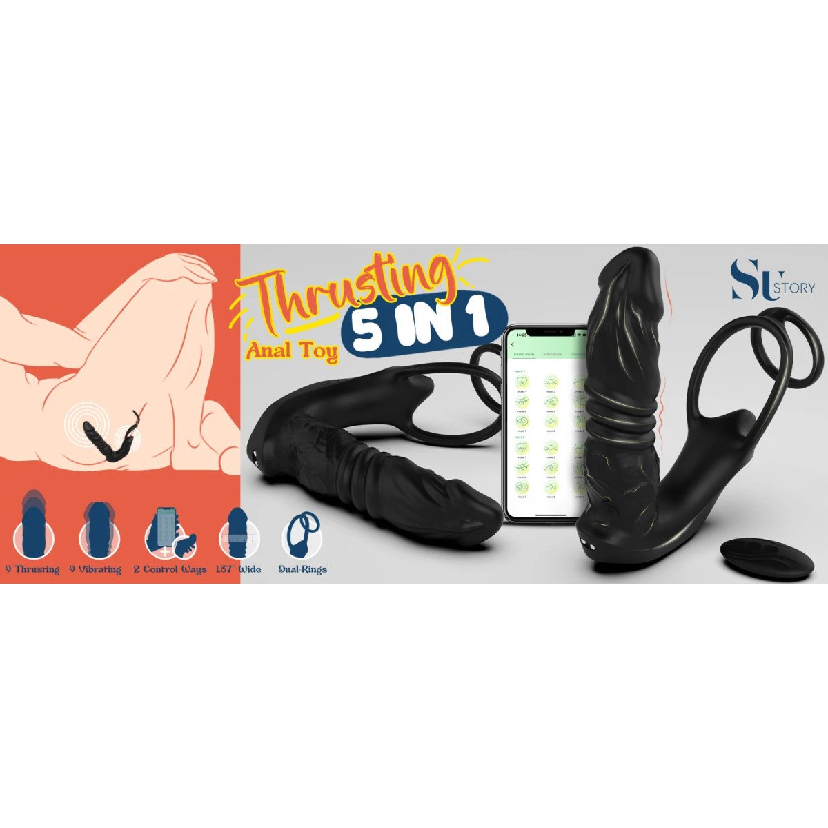 • Función: Vibrador Anal + Masaje de Próstata + Anillo para Pene