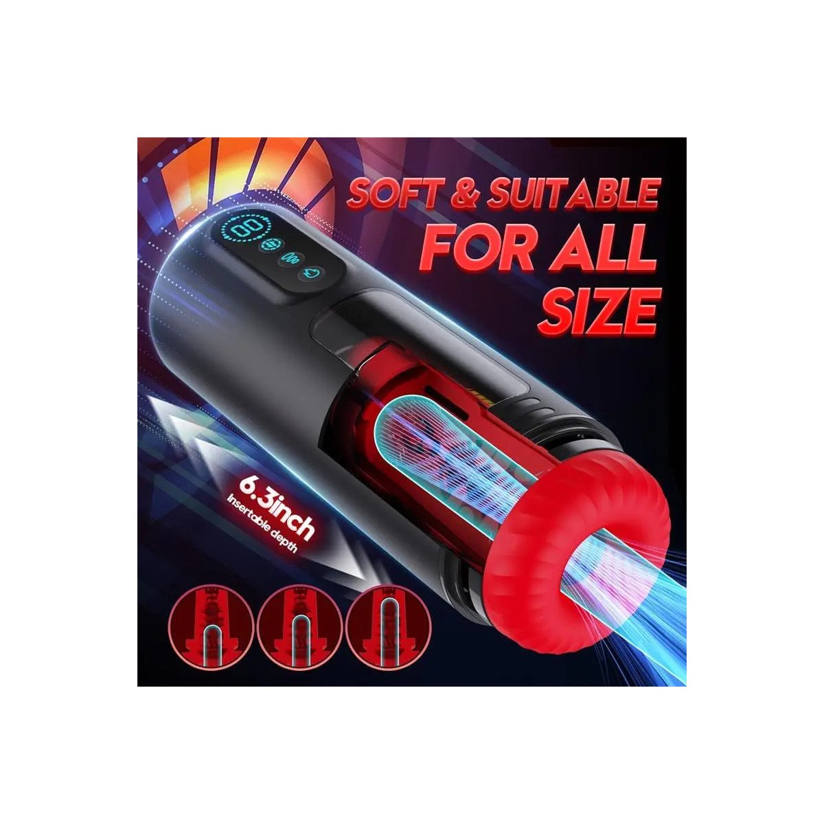 Fabricado con silicona médica de alta calidad, este vaso masturbador no solo es seguro, sino también increíblemente suave y cómodo de usar. La función de calentamiento inteligente añade una capa extra de realismo, mientras que la pantalla digital permite una fácil navegación a través de sus diversas configuraciones. El dispositivo opera con un voltaje nominal de 3.7V y está diseñado para la conveniencia, con un tamaño compacto de 265 mm x 90 mm y una construcción ligera.